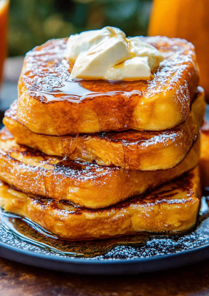 A cozy, golden breakfast favorite made with pumpkin puree, warm spices, and fluffy bread — perfect for crisp fall mornings. Sweet, soft, and full of autumn flavor in every bite!